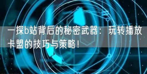 一探b站背后的秘密武器:玩转播放卡盟的技巧与策略!