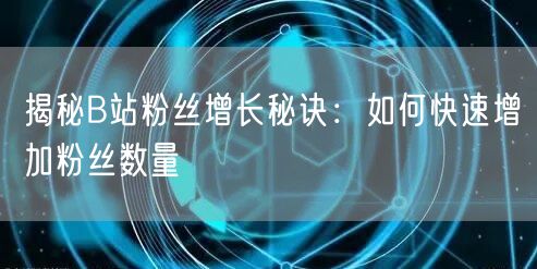 揭秘B站粉丝增长秘诀:如何快速增加粉丝数量