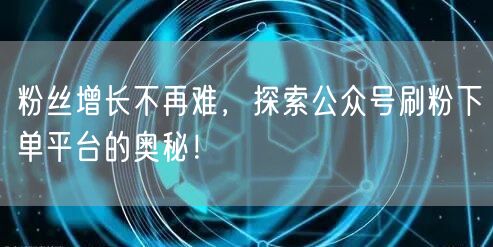 通过本文的探讨,你将了解公众号刷粉下单平台的奥秘,并掌握有效的粉丝增长策略。让我们一起努力,让公众号的粉丝增长不再难!