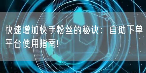 快速增加快手粉丝的秘诀:自助下单平台使用指南!
