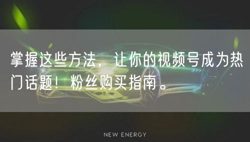 掌握这些方法,让你的视频号成为热门话题!粉丝购买指南。