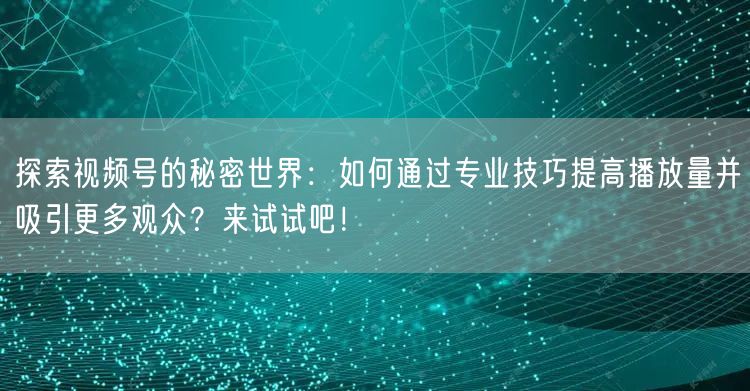 探索视频号的秘密世界:如何通过专业技巧提高播放量并吸引更多观众?来试试吧!