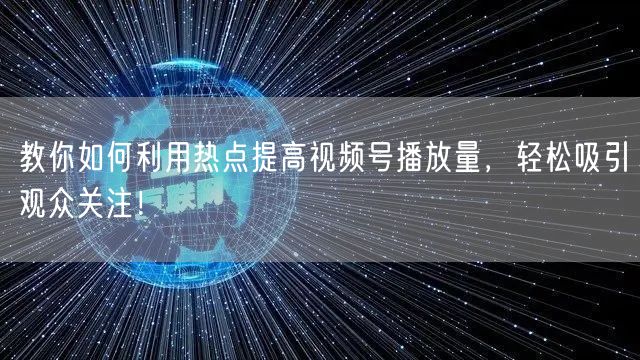 教你如何利用热点提高视频号播放量,轻松吸引观众关注!