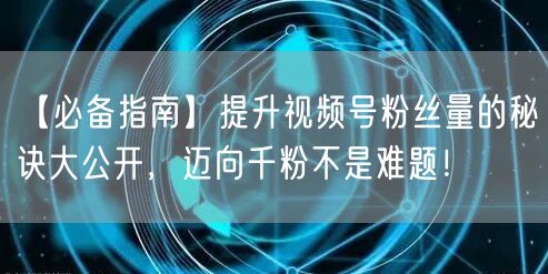 【必备指南】提升视频号粉丝量的秘诀大公开,迈向千粉不是难题!