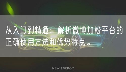 从入门到精通:解析微博加粉平台的正确使用方法和优势特点。