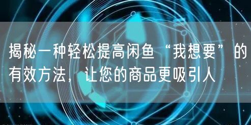 揭秘一种轻松提高闲鱼“我想要”的有效方法,让您的商品更吸引人