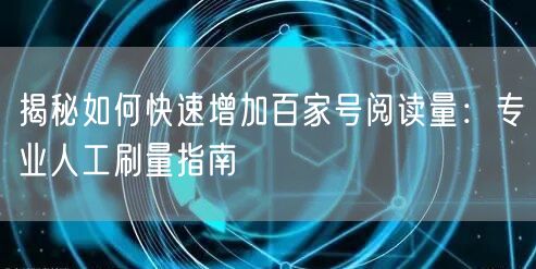 在数字化时代,百家号的阅读量成为了许多作者关注的焦点。如何快速增加百家号阅读量,提升内容影响力呢?本文将为你揭秘专业的人工刷量指南,助你轻松吸引更多关注。