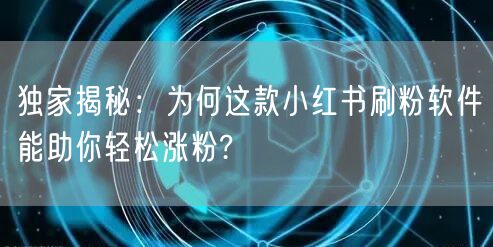 独家揭秘:为何这款小红书刷粉软件能助你轻松涨粉?