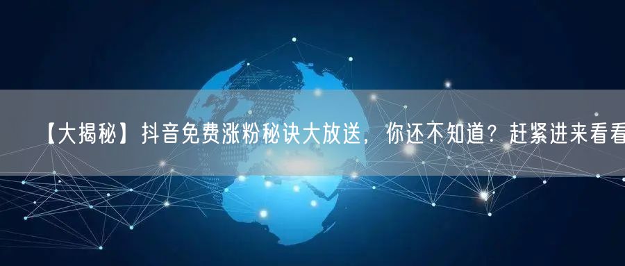 【大揭秘】抖音免费涨粉秘诀大放送,你还不知道?赶紧进来看看!