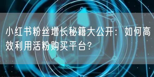 小红书粉丝增长秘籍大公开:如何高效利用活粉购买平台?