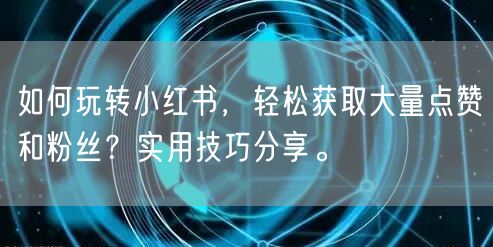 如何玩转小红书,轻松获取大量点赞和粉丝?实用技巧分享。